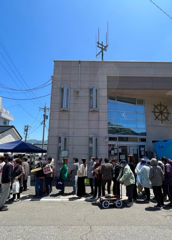 輪島の方も列に並びながら、「どうやって、焼くのだろう〜?」
