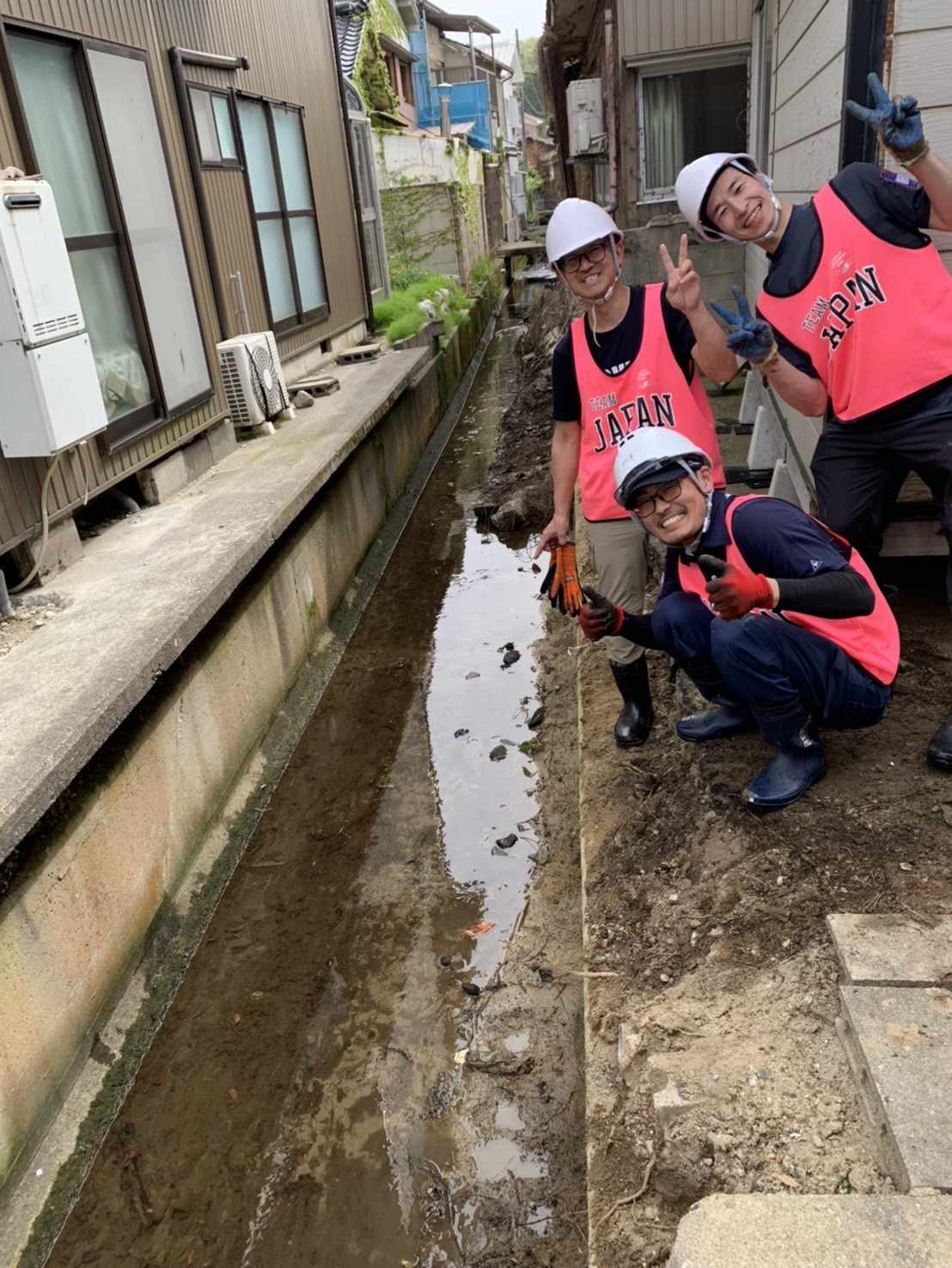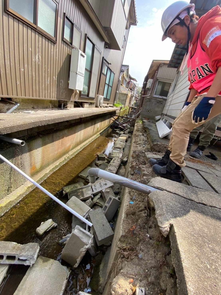 建物のブロックが用水路に崩れ、水の流れが悪くなっていた場所で作業もしました!