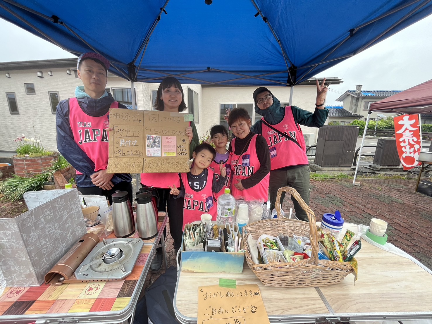 炊き出しとお片付けのお手伝いで仲間が動いています。